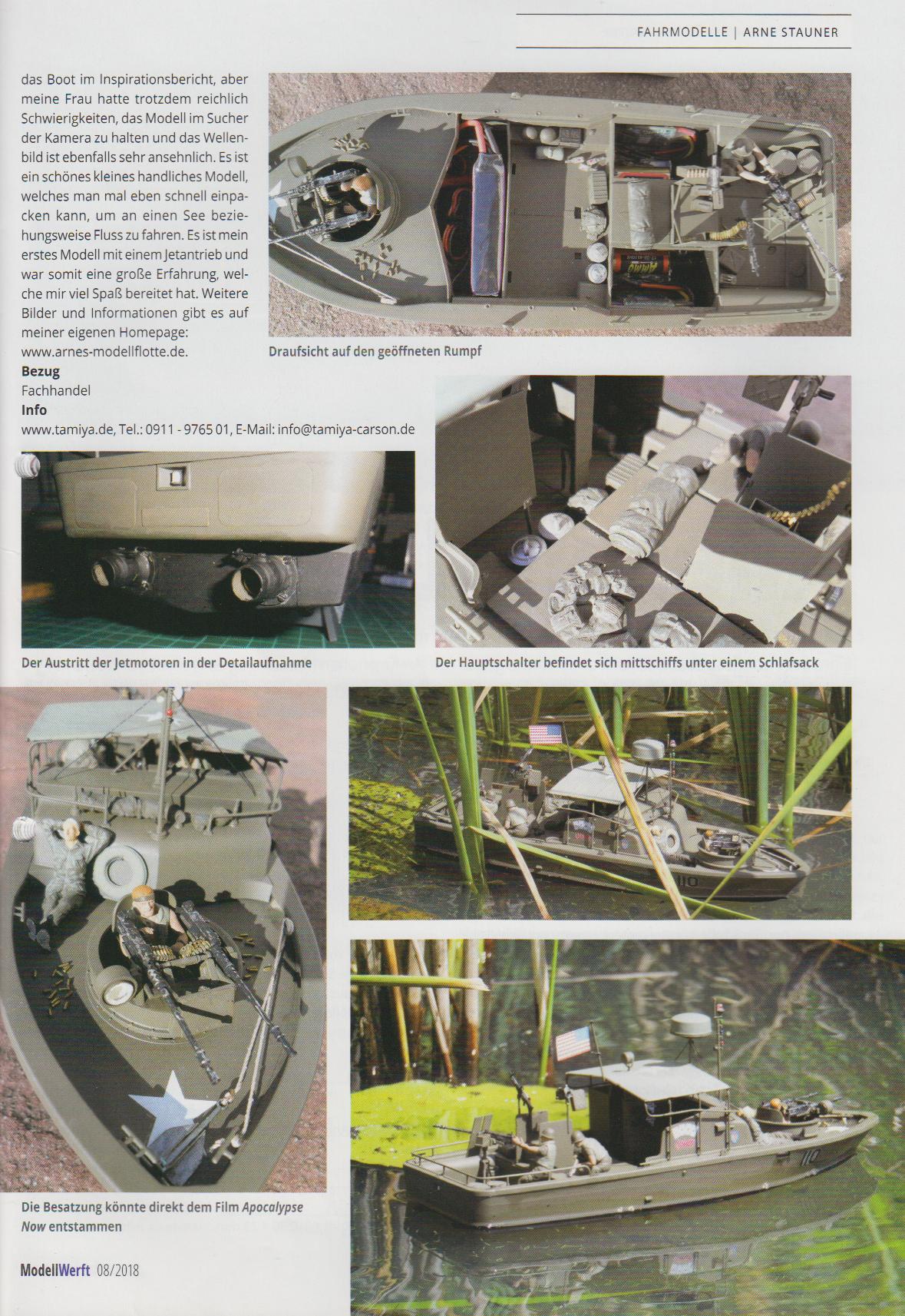 Wer den Film "Apocalypse now" kennt, kennt auch dieses Patrollienboot aus der sogenannten "Braune Wasser Flotte" der US-Streitkräfte in Vietnam. Ich hatte das Modell im Maßstab 1:35 vor gut 20 Jahren schon einmal gebaut, doch aufgrund der damaligen Antriebstechnik war das Projekt nicht gerade vom Erfolg geprägt und so wurde es quasi ein Standmodell. Doch jetzt mit mehr Erfahrung, bürstenlosen Motoren und leichteren aber trotzdem leistungsfähigen Akkus ging ich das Projekt erneut an und bin mit Ergebnis deutlich zufriedener.